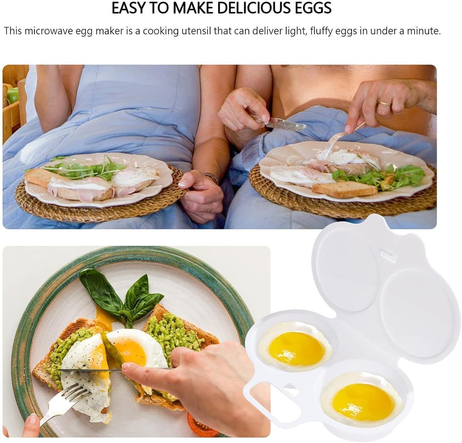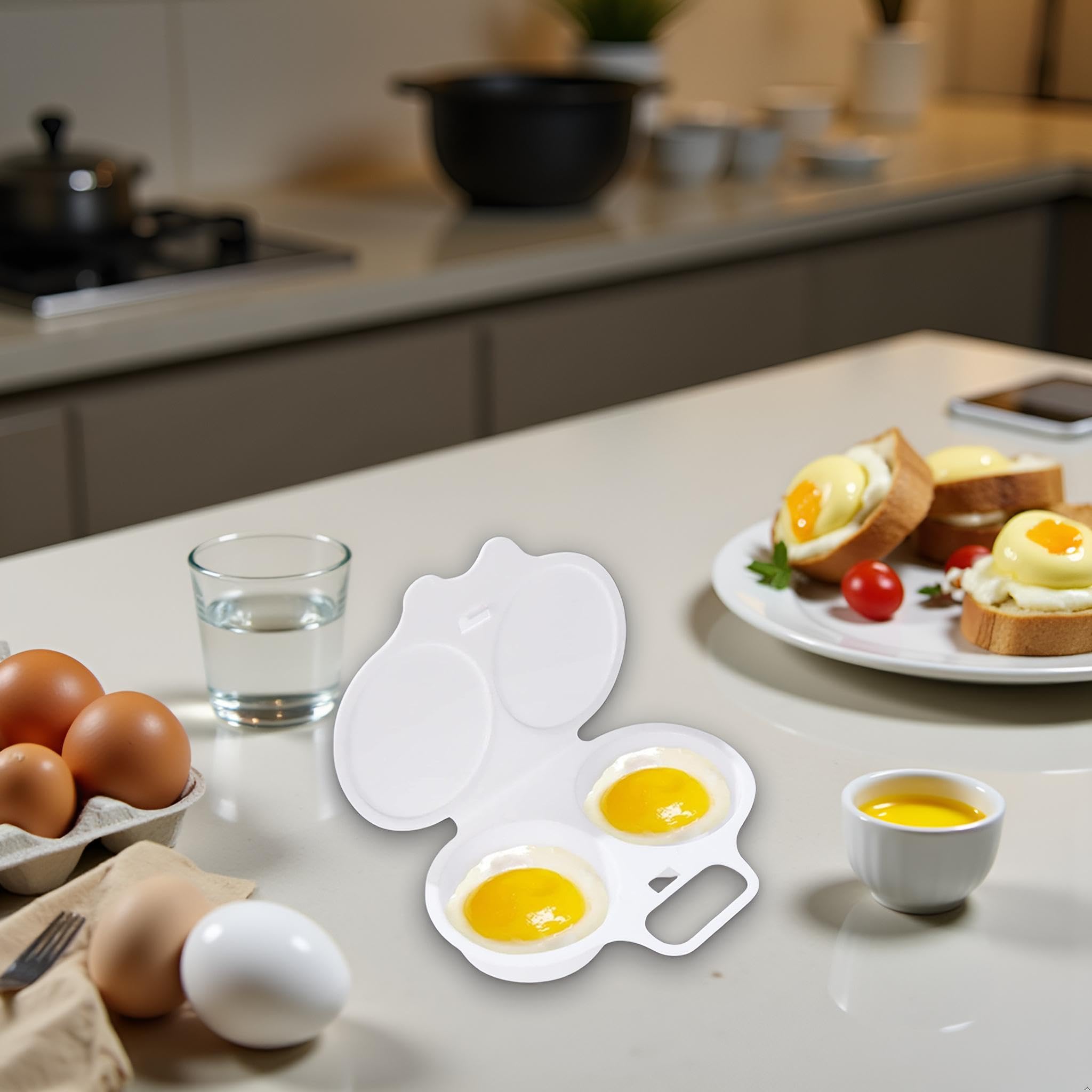 Pochierte Eier zum Frühstück, aber keine Lust auf Topf, Sieb und Chaos? Dieser Mikrowellen-Eierpochierer macht alles supereinfach! Aus lebensmittelechtem PP-Kunststoff, ohne schädliche Stoffe, einfach Eier in die zwei Antihaft-Mulden (je 7 cm Durchmesser) aufschlagen, Deckel drauf und für wenige Minuten in die Mikrowelle. Schon hast du perfekt geformte, pochierte Eier – ganz ohne kochendes Wasser! Die Antihaft-Beschichtung sorgt dafür, dass die Eier leicht rausrutschen und die Form superleicht zu reinigen ist (auch spülmaschinengeeignet). Perfekt für stressige Morgen oder wenn du mal was Besonderes aufs Brötchen zaubern willst. Mit dem Deckel spritzt nichts in die Mikrowelle. Das Set ist langlebig, wiederverwendbar und spart Zeit und Abwasch. Probiere auch verschiedene Gewürze direkt im Pochierer aus! So wird jedes Frühstück zum kleinen Luxus – ganz ohne Küchenskills.